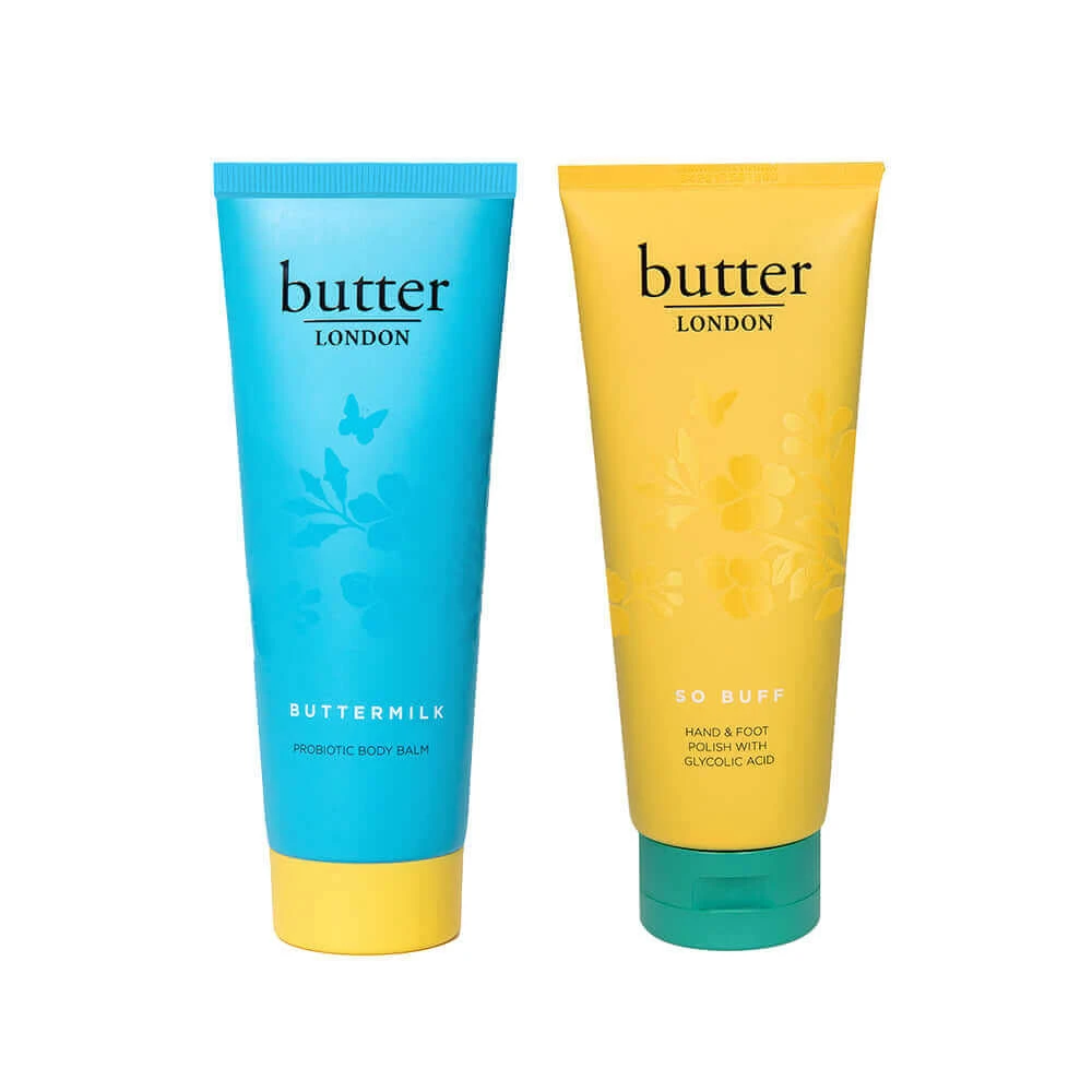 So Buff Hand and Foot Polish with Glycolic Acid: Preps skin for moisture absorption; Buttermilk Probiotic Body Balm: Ultra-hydrating body balm that instantly moisturizes the skin and helps create a sense of well-being.